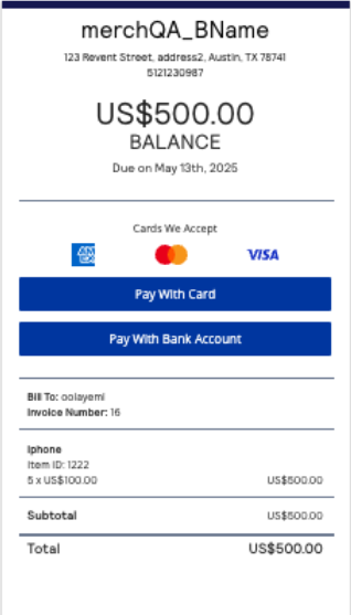Businesses can bill any customer with an email address and accept digital payments securely from any connected device. If the eCheck payment is enabled for your account, it appears as